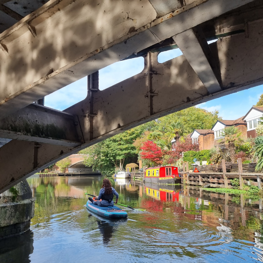 The launch point was conveniently located next to Elmbridge Canoe Club and a free riverside car park. Great spot! We had access to the River Thames, upstream or downstream, as well as the River Wey intertwining with the Wey and Godalming Navigations. A bit confusing with the river and navigation, until I learned that the navigation was built to make the river navigable and offer a commercial traffic route to London in the 17th century. Basically, half natural river, half canal. Makes perfect sense and what a brilliant canalisation scheme by a local boy, Sir Richard Weston, back in the day! Today, it is purely a leisure waterway.