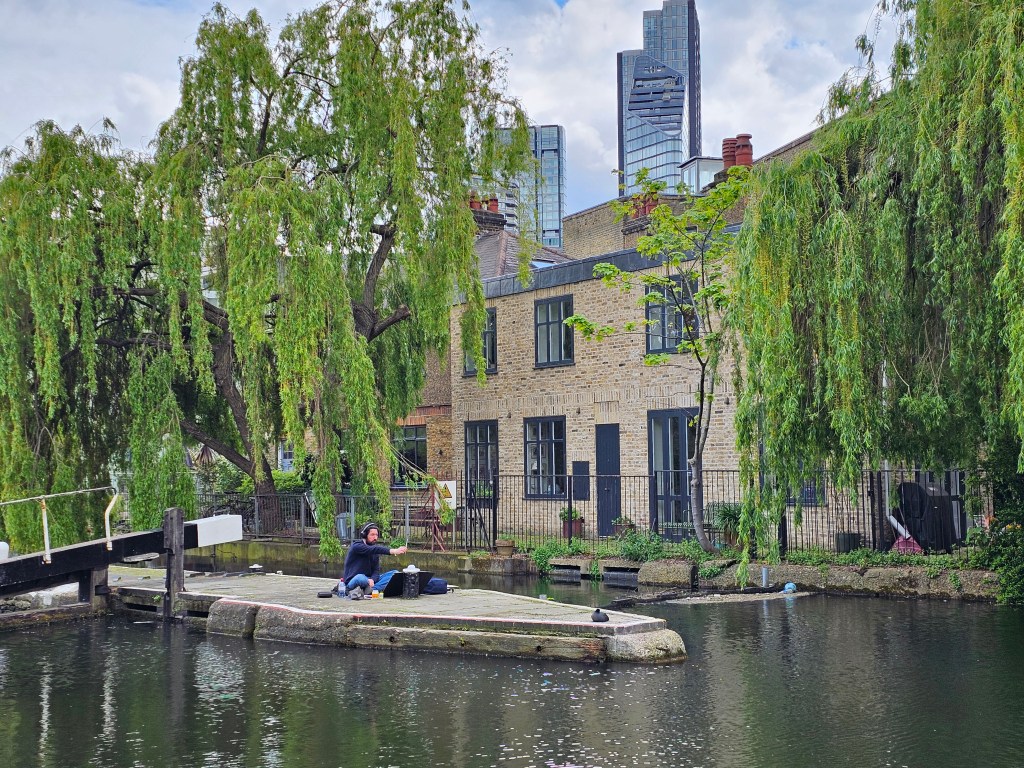 On a busy day in Islington, I paddled past a lone man sitting cross-legged at City Road Lock, completely immersed in his sketchbook. Thousands of people around him on the towpaths and he didn’t register any of it. Headphones on. Total focus. I still wonder what he was listening to.