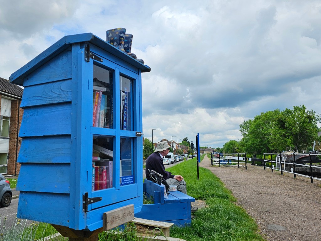 At Enfield Lock there’s a little bookswap box. One afternoon an elderly gentleman arrived with a packed lunch and chose to eat by the water instead of at home. He chatted with passing boaters and paddlers. I imagined him browsing the books afterwards and walking away with a new read.